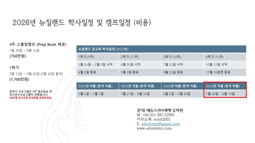 뉴질랜드와 에듀스카이에서 제공하는 다양한 정보를 만나보세요